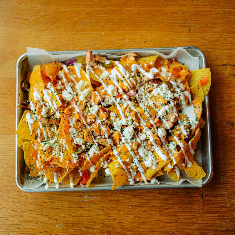 House-fried chips, fresh pico, pickled jalapeños, beer cheese, finished with house lime sour cream